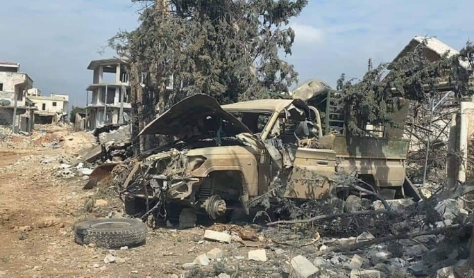 آليات العدو التركي المدمرة في الهجوم الأخير على جبهة النيرب بريف إدلب