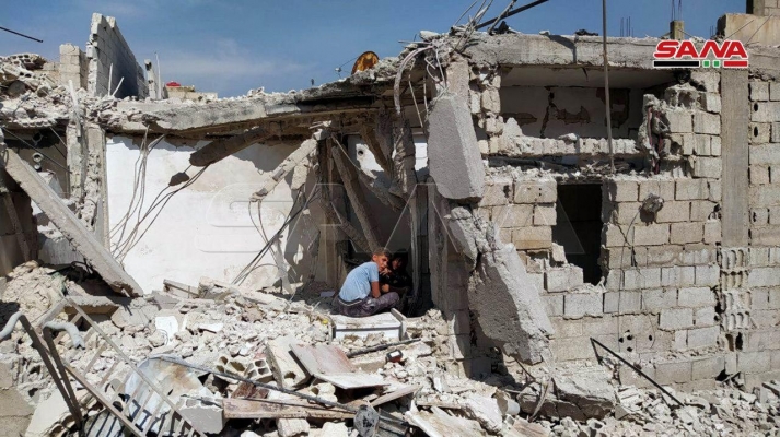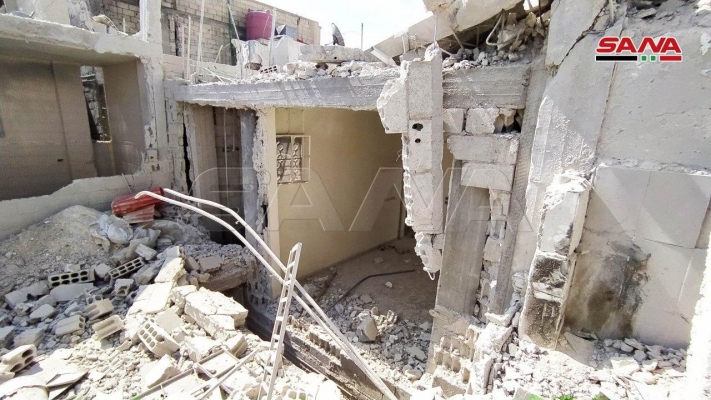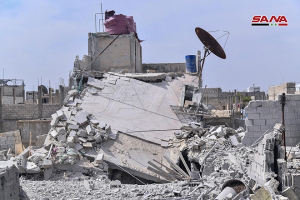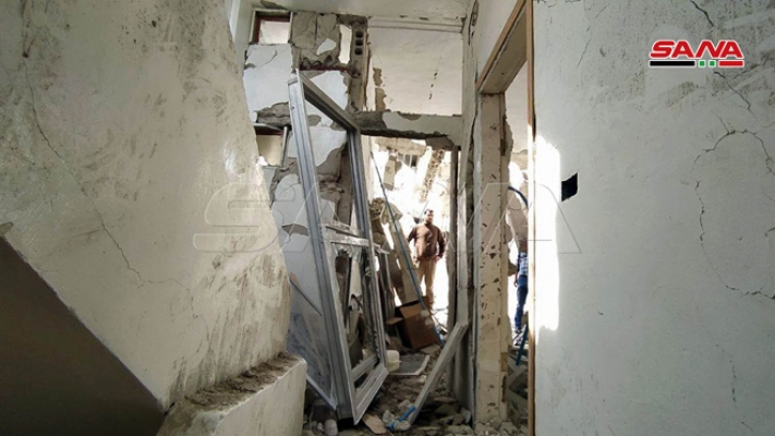 الأضرار في منازل الأهالي في بلدة حجيرة بريف دمشق جراء العدوان الإسرائيلي فجر اليوم