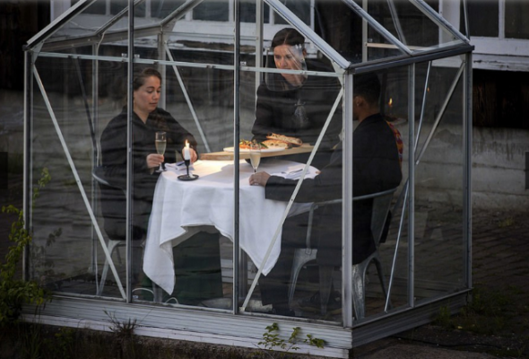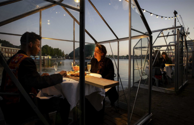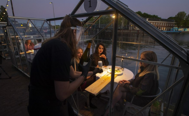 شاهد.. مطعم هولندي يبتكر طريقة للتباعد الاجتماعي
