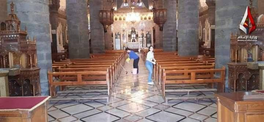 كاتدرائية سيدة النياح حارة الزيتون تستعد لصوات يوم الأحد وتتخذ اجراءات التعقيم والتنظيف