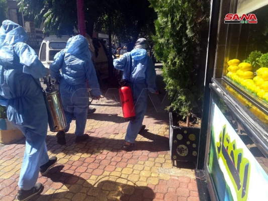 انطلاق حملة التعقيم التي تشرف عليها محافظة دمشق بدءاً من منطقة باب مصلى وباتجاه حي الميدان