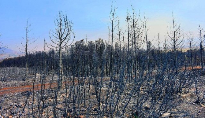 من الخسائر التي ألحقتها الحرائق بالثروة الحراجية في ريف حماه الغربي