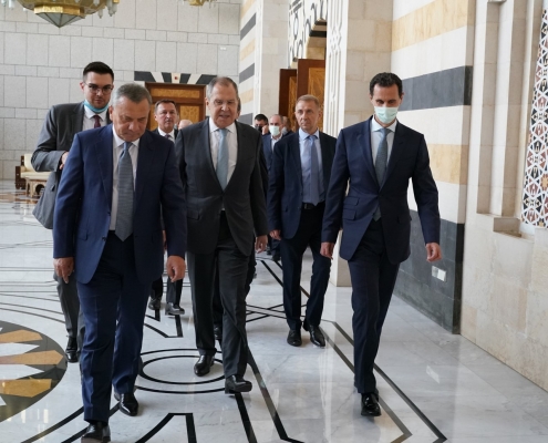 الرئيس الأسد يستقبل وفدا روسيا برئاسة يوري بوريسوف نائب رئيس الوزراء، وحضور عدد من الدبلوماسيين الروس على رأسهم سيرغي لافروف وزير الخارجية.