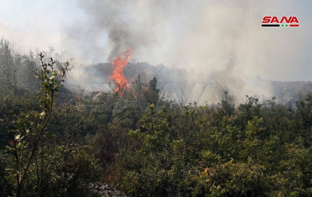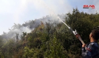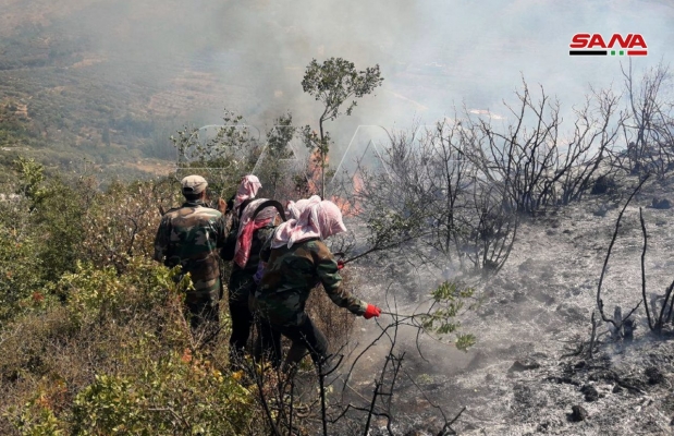 مواصلة العمل على تطويق الحريق وإخماده في محيط بلدة حزور جنوب غرب مصياف