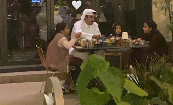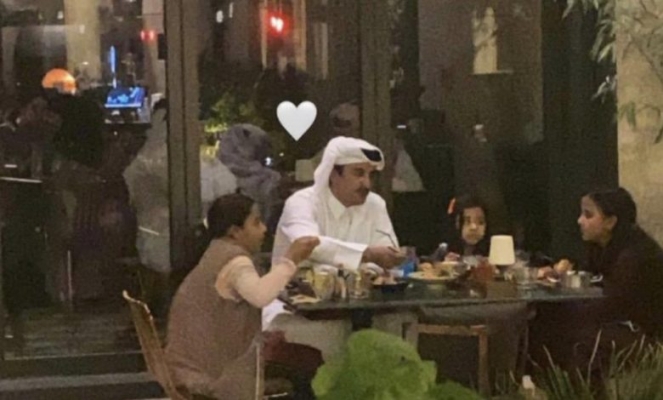 أمير قطر مع يجلس مع بناته في أحد مطاعم الدوحة