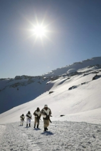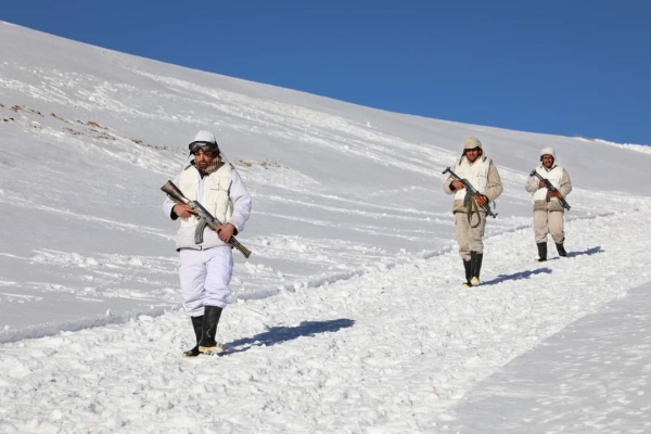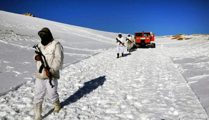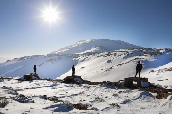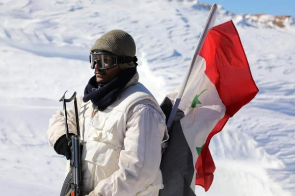 جنود الجيش السوري من مراصد جبل الشيخ أثناء العاصفة الثلجية