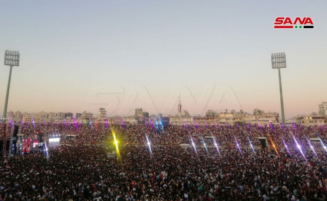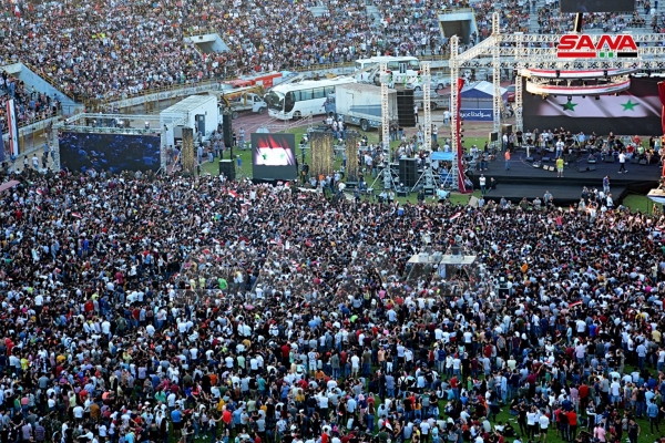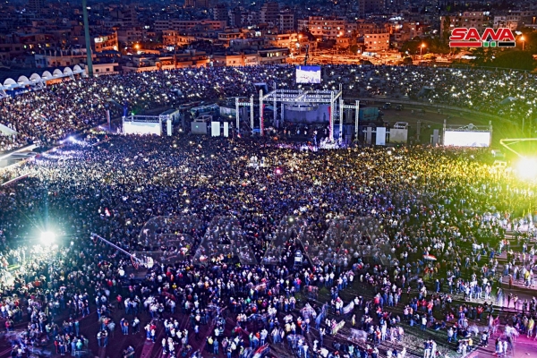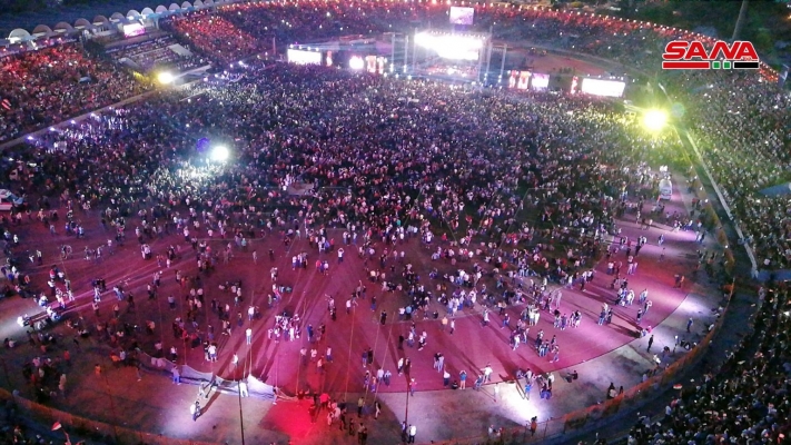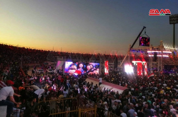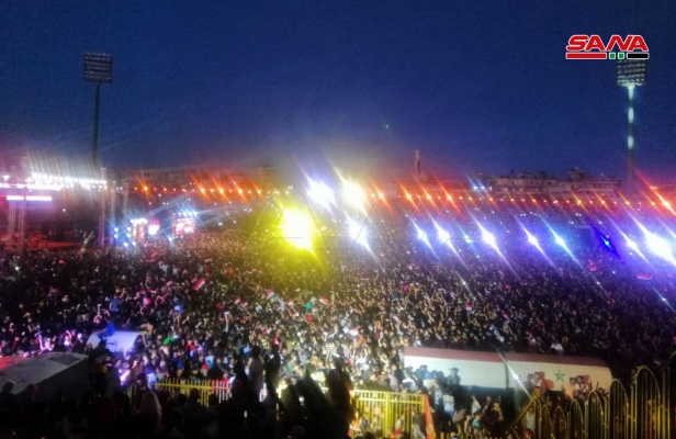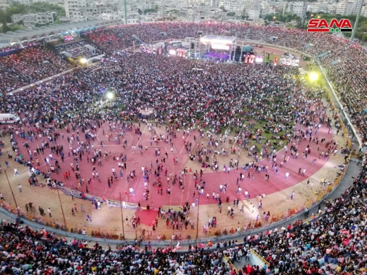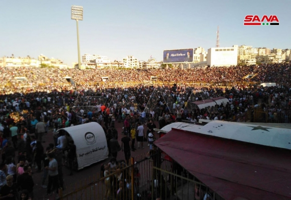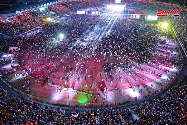 من الحفل الجماهيري الحاشد في ملعب الباسل بلاذقية احتفاء بفوز الدكتور بشار الأسد في انتخابات رئاسة الجمهورية