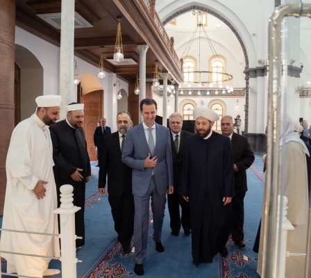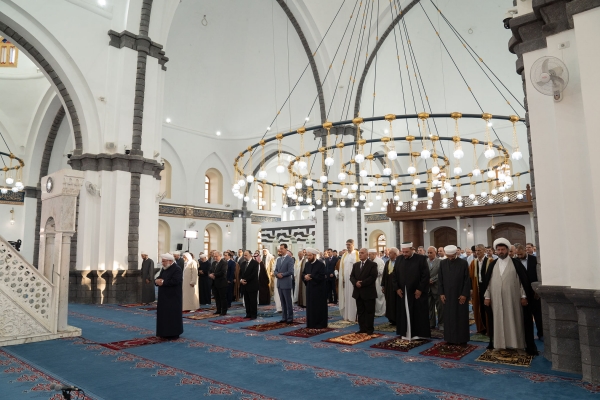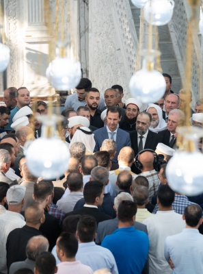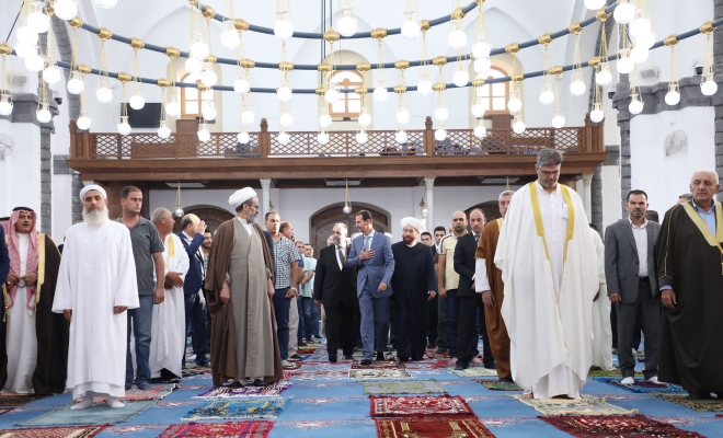 السيد الرئيس بشار الأسد يؤدي صلاة عيد الأضحى المبارك في رحاب جامع الصحابي الجليل خالد بن الوليد في مدينة حمص