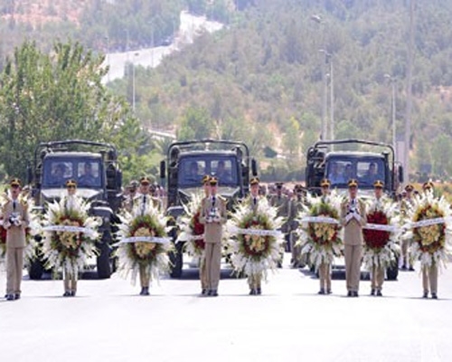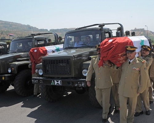 تشييع الشهداء الأبطال توركماني وراجحة وشوكت إلى مثاويهم الأخيرة في صرح الشهيد بدمشق