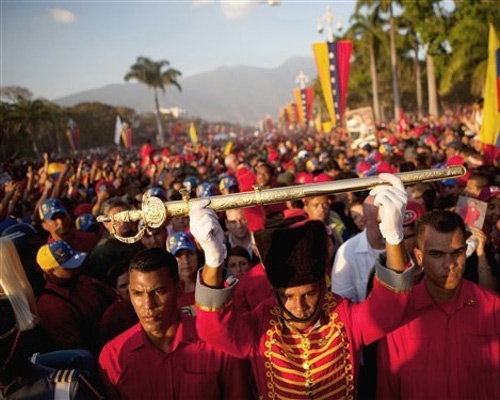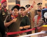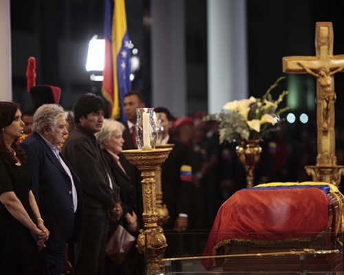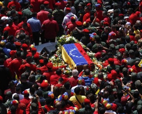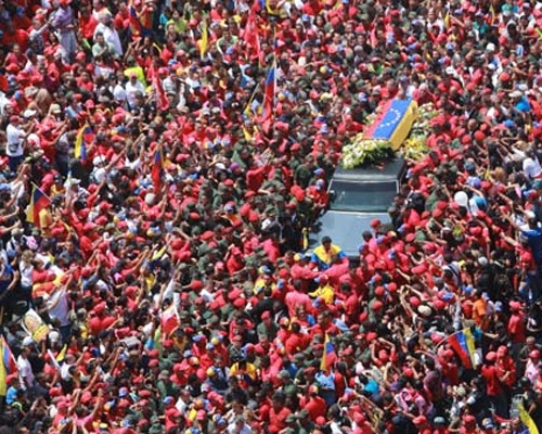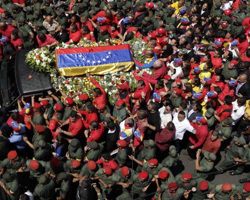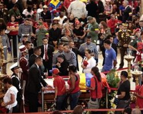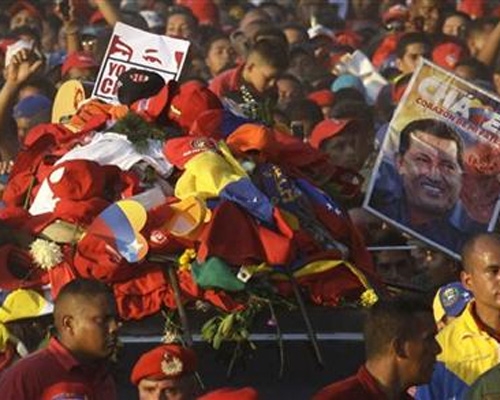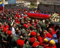 الآلاف يشاركون في مسيرة تحمل جثمان الراحل رئيس فنزويلا هوغو تشافيز قبل تحنيطه ووضعه في المتحف
