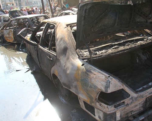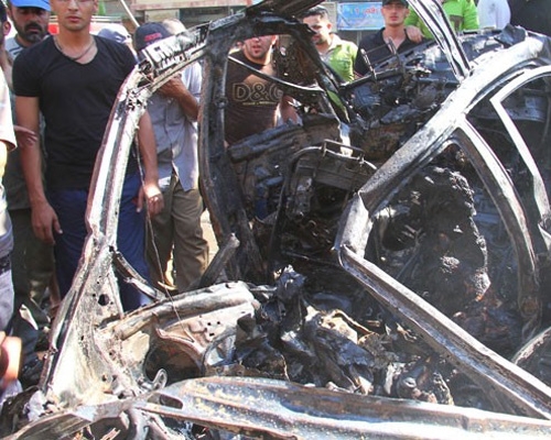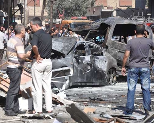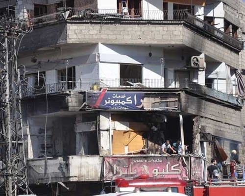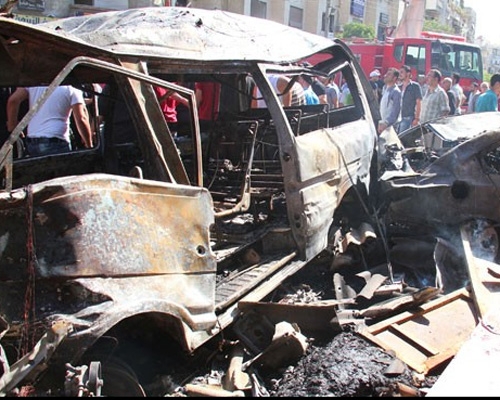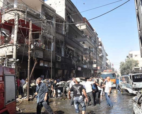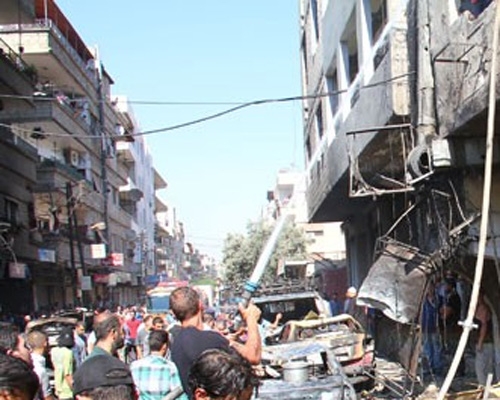 استشهاد عشرة مواطنين وإصابة العشرات جراء تفجير إرهابي بسيارة مفخخة في ساحة السيوف بمدينة جرمانا
