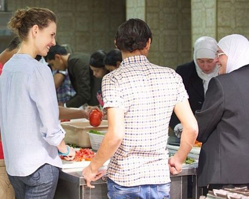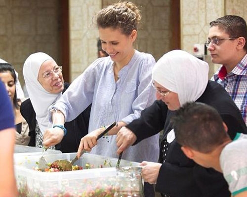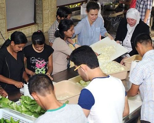 مشاركة السيدة أسماء الأسد بإعداد طعام الإفطار مع مجمّع لحن الحياة للأيتام.
