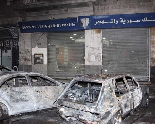 سقوط قذيفة صاروخية في برج الروس بمنطقة القصاع في دمشق