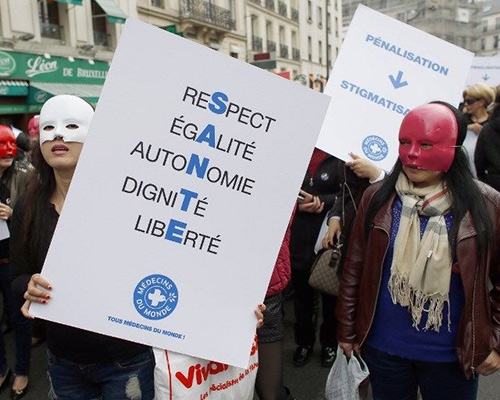 مومسات يتظاهرن في فرنسا ضد قانون يجرم زبائن الدعارة