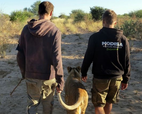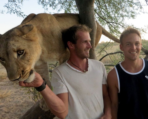 .شابان ينقذان مجموعة من الأسود ضلت طريقها