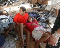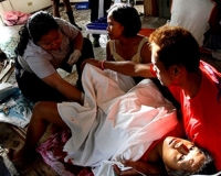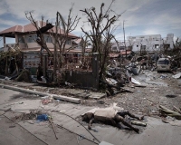 امراة تضع مولودها فوق حطام إعصار الفيلبين