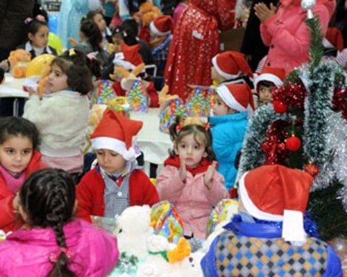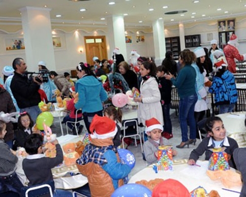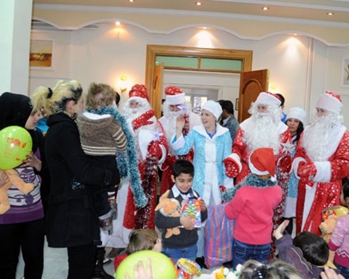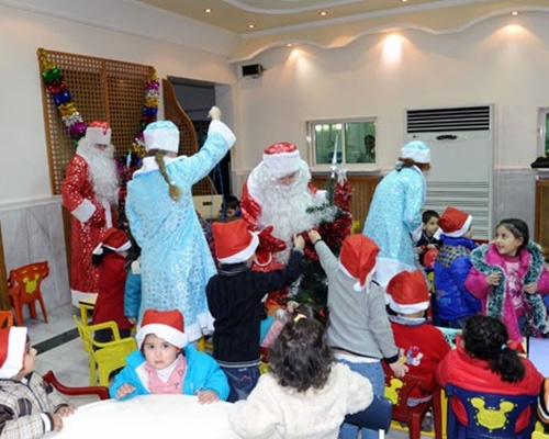 وفد شبابي روسي يشارك بنات الشهداء الاحتفال بعيد الميلاد