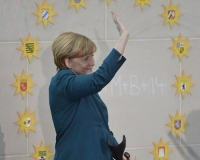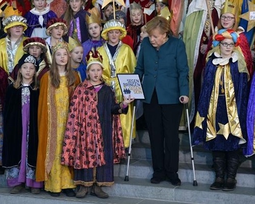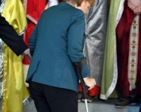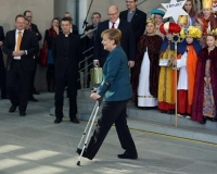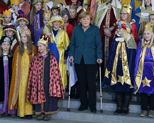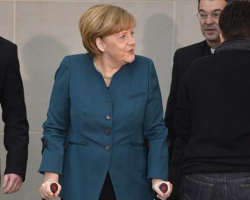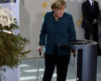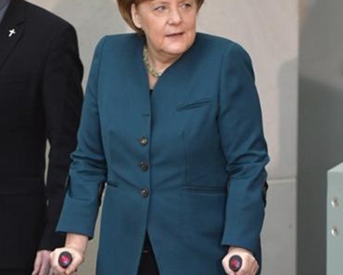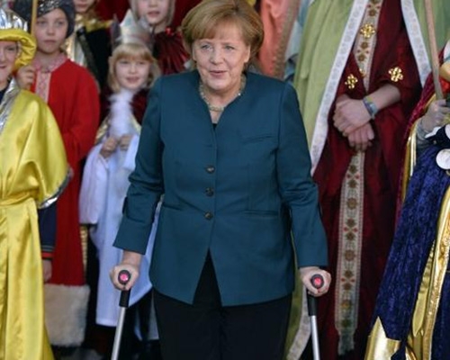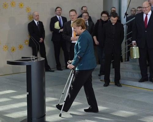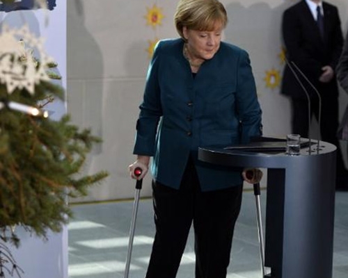 أنجيلا ميركل بعد إصابتها أثناء التزلج