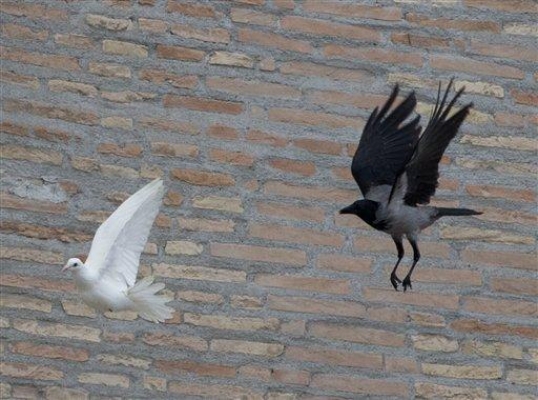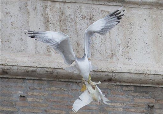 طيور مفترسة تفتك بحمام السلام الذي اطلقه بابا الفاتيكان