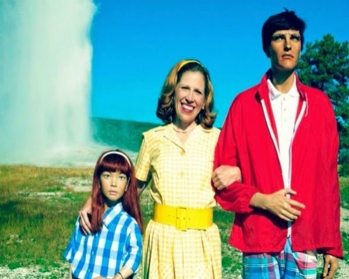 امرأة تتخلص من وحدتها بتأسيس عائلة من المانيكان تحملهم اينما ذهبت و تلتقط معهم الصور العائلية