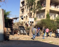 اثار الدمار نتيجة سقوط القذائف في مدينة الباب بحلب