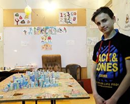 محمد قطيش .. طفل سوري من حلب يبني بالورق مدينته المدمرة