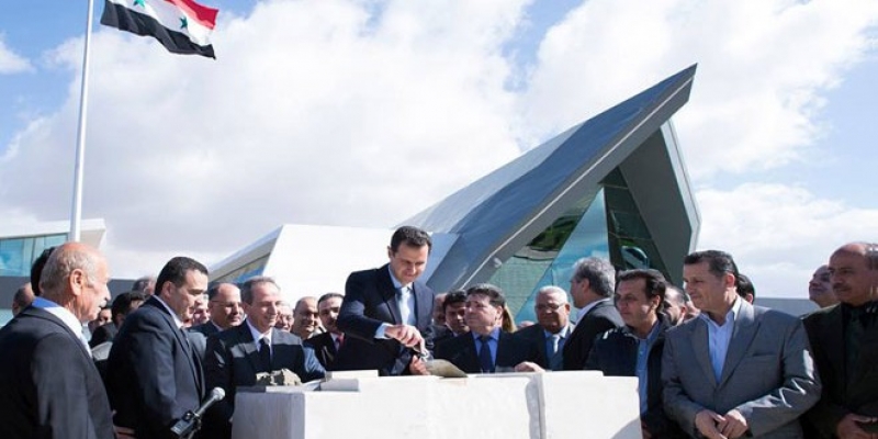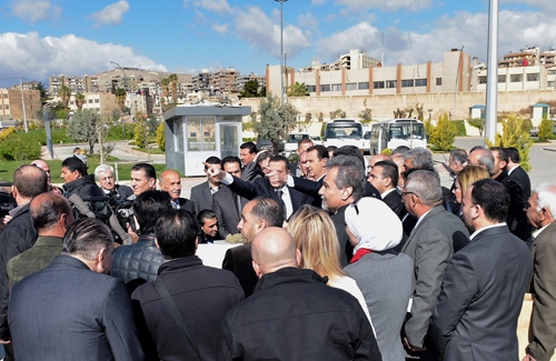 الرئيس الاسد يضع حجر الاساس تنظيم66 خلف بساتين الرازي