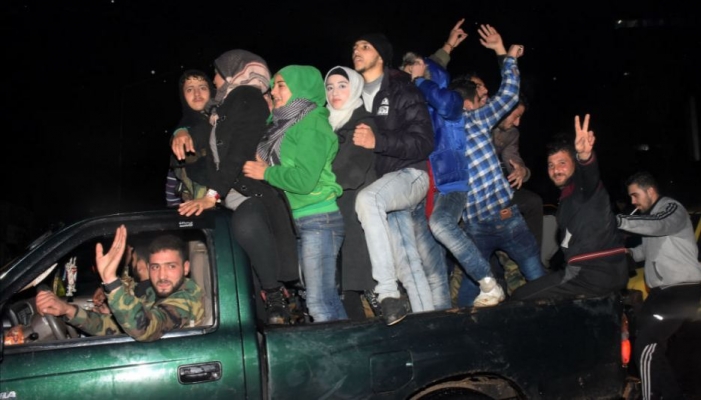 أهالي حلب ينزلون إلى الشوارع احتفالاً بالنصر
