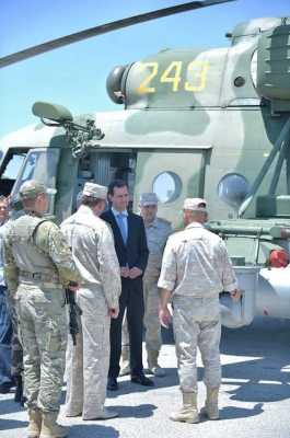 الرئيس الأسد يتفقد قاعدة حميميم العسكرية وفِي استقباله الجنرال رئيس هيئة الأركان الروسي