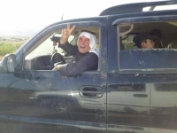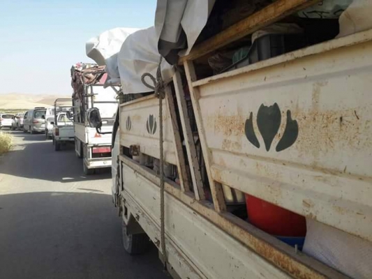 وصول قافلة الدفعة الثانية من نازحي مخيمات عرسال اللبنانية إلى بلدة عسال الورد السورية في القلمون الغربي