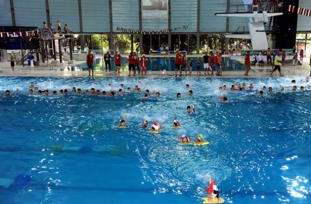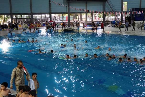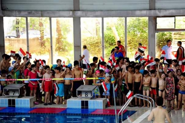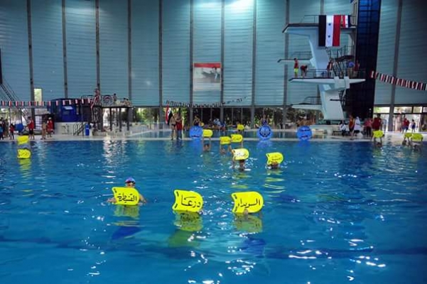 مهرجان رياضي في مسبح تشرين بدمشق في ختام مدارسه الصيفية لتعليم السباحة