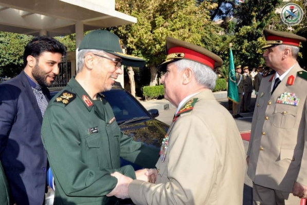 استقبال العماد علي أيوب رئيس هيئة الأركان العامة للجيش والقوات المسلحة السورية لنظيره الايراني اللواء محمد باقري