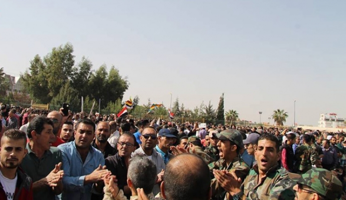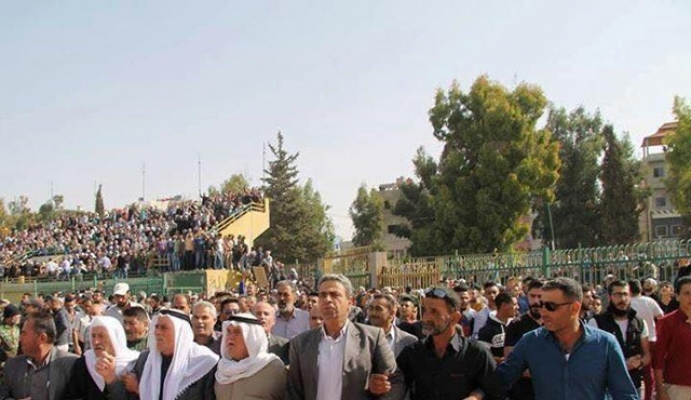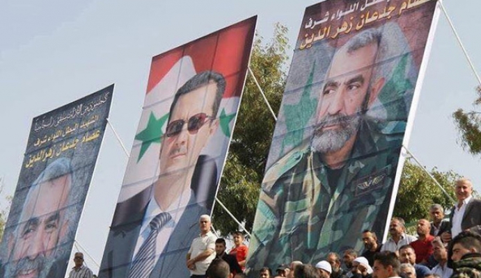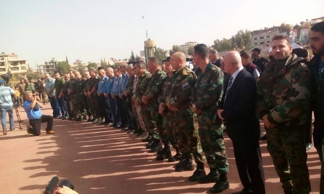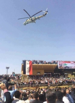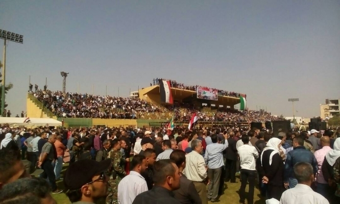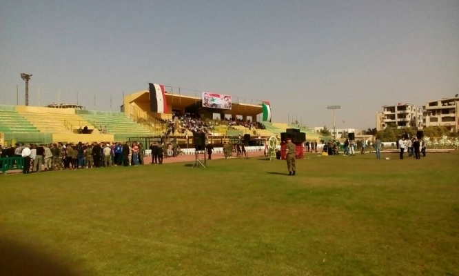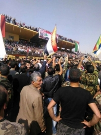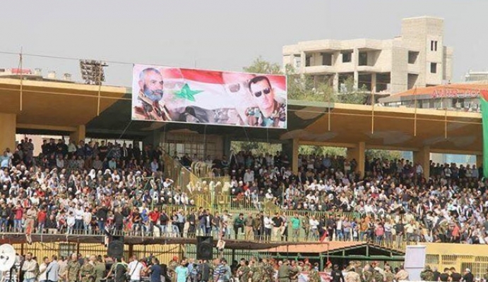 من تشييع الشهيد اللواء عصام زهر الدين في الملعب البلدي بالسويداء