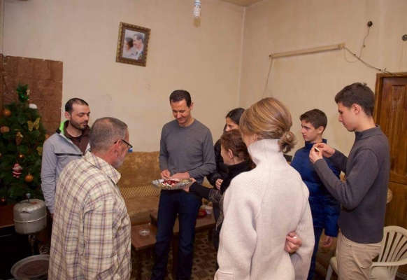 الرئيس الأسد وعائلته في زيارة لجرحى الجيش السوري في حمص