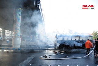 شهداء وجرحى في تفجير إرهابي استهدف حافلة مبيت عسكرية عند جسر الرئيس بدمشق