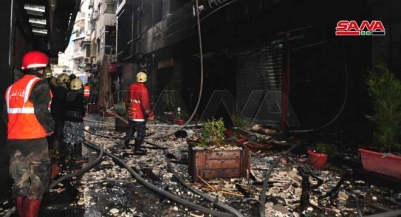 جراء حريق في (مول لاميرادا) بشارع الحمراء بدمشق