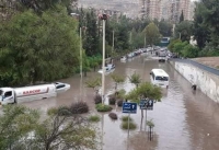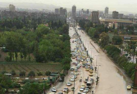 سيول في شوارع دمشق نتيجة العاصفة المطرية