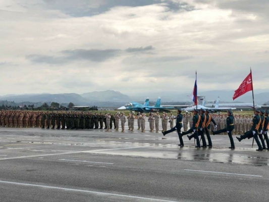 العرض العسكري في مطار حميميم بمناسبة الذكرى 73 للنصر على النازية