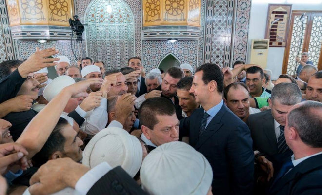 الرئيس الأسد يؤدي صلاة عيد الفطر في جامع السيدة خديجة في مدينة طرطوس