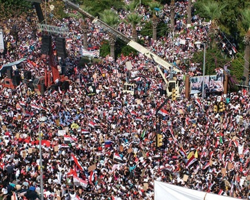أكثر من مليون مواطن يحتشدون وسط اللاذقية دعماً للقرار الوطني المستقل والإصلاح ورفضا للتدخل الخارجي