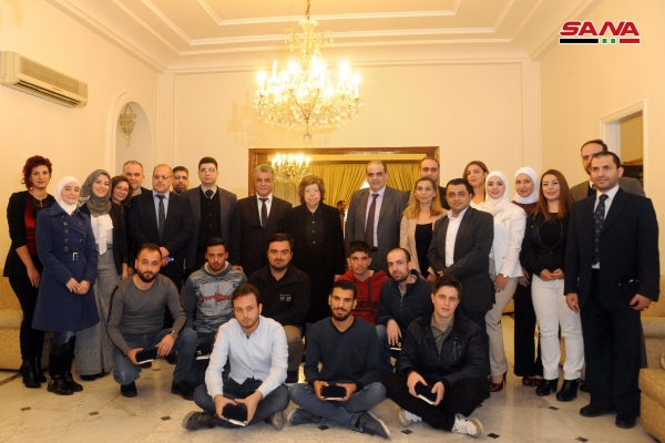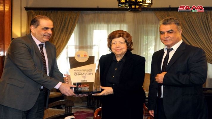 الدكتورة نجاح العطار نائب رئيس الجمهورية رئيس مجلس أمناء الجامعة الافتراضية السورية تكرم فريق الجامعة "راديو أكتيف"