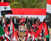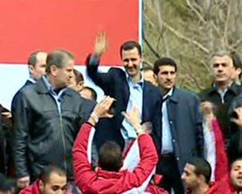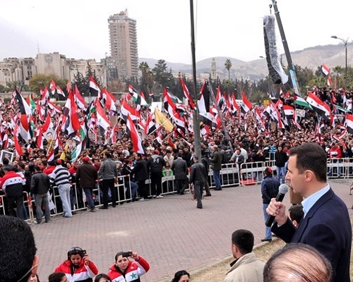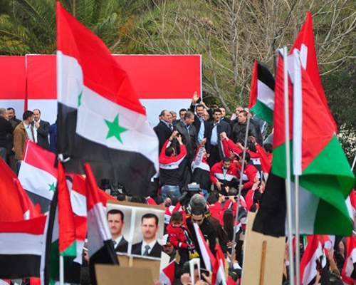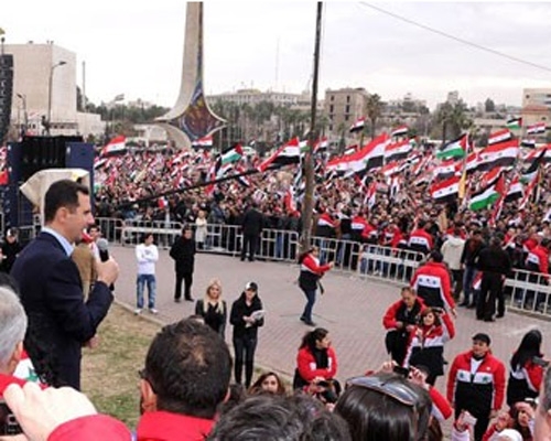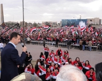 الرئيس الأسد يفاجئ المحتشدين في ساحة الأمويين: أردت أن أكون معكم في قلب دمشق عاصمة المقاومة والتاريخ والحضارة