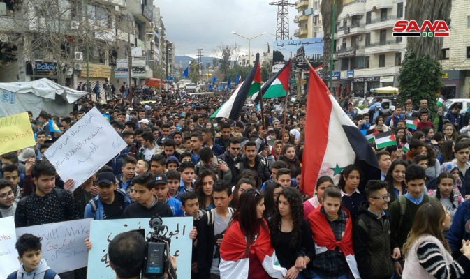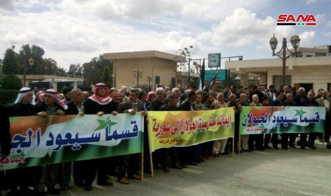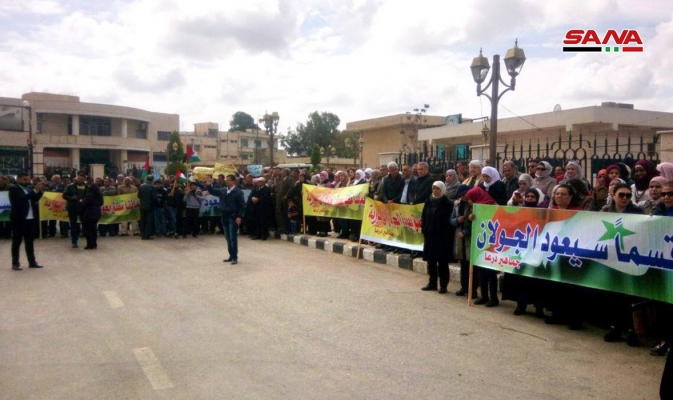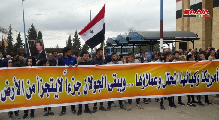 وقفات احتجاجية في المحافظات السورية تنديداً بقرار ترامب حول الجولان المحتل وتأكيداً على هويته السورية