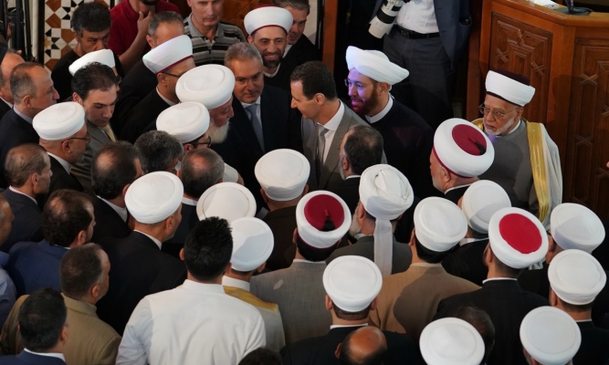 الرئيس الأسد يؤدي صلاة عيد الفطر السعيد في جامع السيد الرئيس حافظ الأسد بـدمشق.