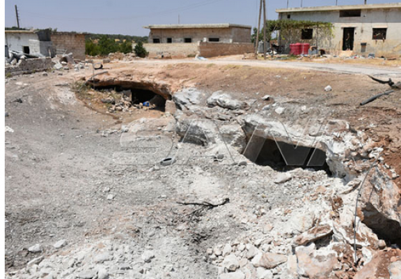 تحصينات ومخابئ الإرهابيين في قرية ام زيتون التي حررها الجيش شرق بلدة الهبيط بريف إدلب الجنوبي الشرقي