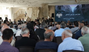 عقد محافظ دمشق السيد ماهر مروان ادلبـي جلسة ودّية مع عدد من أهالي حي جوبر، بحضور فريق من المهندسين والمختصين في التخطيط الحضري والإعمار، ضمن متابعة ملف الأحياء المدمرة في العاصمة.