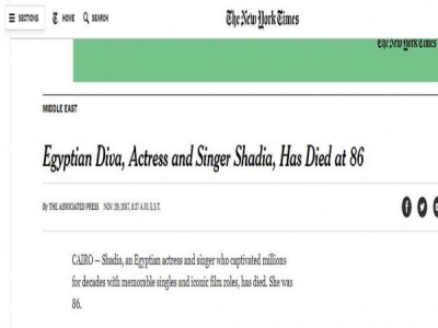 حيث نشرت صحيفة نيويورك تايم "nytimes": " ولدت فاطمة شاكر في عام 1931، ولكن إشتهرت طوال حياتها المهنية بإسم "شادية"، وفي بداية هذا الشهر تعرضت لسكتة دماغية ثم دخلت في غيبوبة، واهتمت الصحيفة في تغطيتها بزيارة الرئيس عبدالفتاح السيسي وحرمه لها في المستشفي العسكري التي نُقلت إليها مؤخراّ".