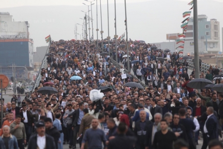 و نشر ناشطون أكراد صور لآلاف المتظاهرين الذين خرجوا في الشوارع بعد قيام حكومة إقليم كردستان بخصم نصف رواتبهم.