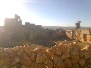 ومن المفيد هنا أن نذكر بأن القرية التي تحمل نفس الاسم بيوتها كانت مبنية بين الآثار لدرجة أن من يأتي إليها زائراً يخطئ التمييز أحياناً بين بيوت القرية وبين المعالم الأثرية التي تداخلت البيوت فيها.