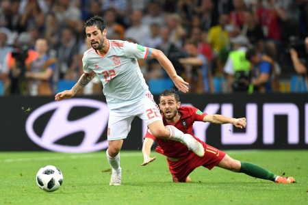 وسجل ثلاثية المنتخب الإسباني، ثنائية من دييجو كوستا في الدقائق "24 و55" وهدف من ناتشو بالدقيقة "58"، بينما ثلاثية المنتخب البرتغالي من توقيع قائد المنتخب كريستيانو رونالدو من ركلة جزاء في الدقيقة "4" وآخر في الدقيقة "44" و مثله من ركلة حرة مباشرة في الدقيقة "88".